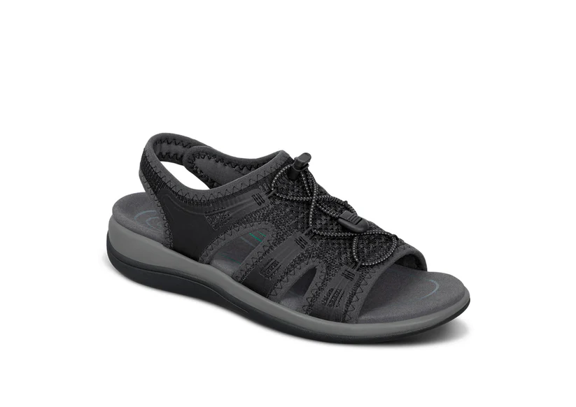 The easygoing style of this casual women’s sandal makes it a little hard to believe how much support and walking comfort it provides. The stretchable, breathable fabric upper gently follows every shape of your foot with a bungee lace to set the perfect active fit. Open the padded heel strap, slide in and adjust. Now let the Ortho-Cushion System make every vista a pleasure to reach.